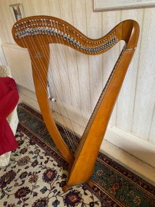 34 light gut strung lever harp in natural maple finish on claw feet. This harp is 18 months old and in excellent condition. It comes with dustcover, tuning key and full 5 year warranty – £2,450.00